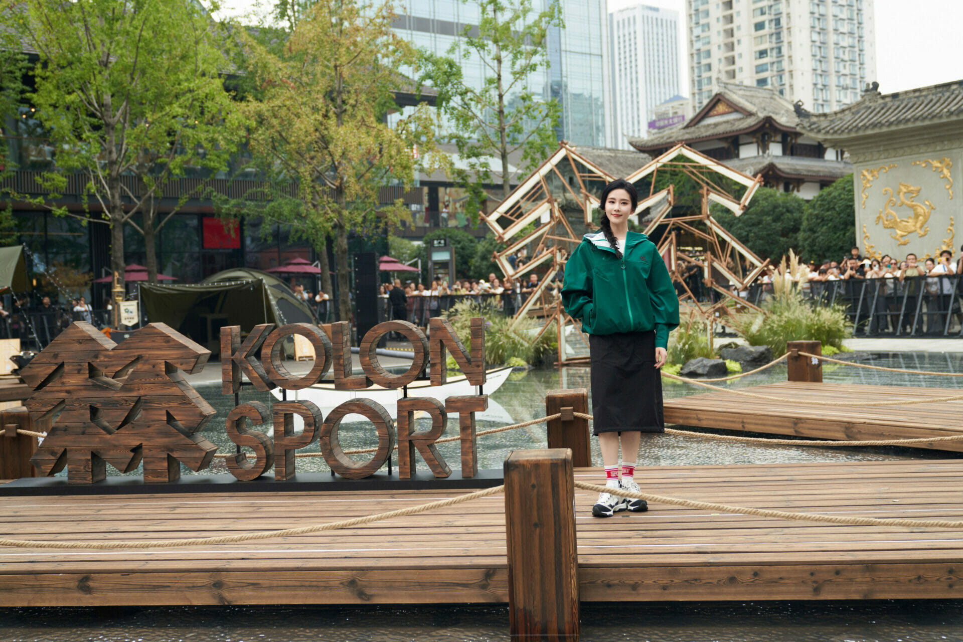 8月18日下午,品牌代言人刘诗诗惊喜亮相可隆自然而然露营节现场,与大家分享了户外露营心得和趣事,并邀请大家跟随她的脚步共同体验丰富有趣的露营节活动,开启一场惊喜又欢快的体验之旅。整个自然而然露营节场景以城中自然为主题,沿木质栈道漫步于水上,巧妙的结合远洋太古里标志性漫广场的水池,让参观者仿佛置身山野露营。